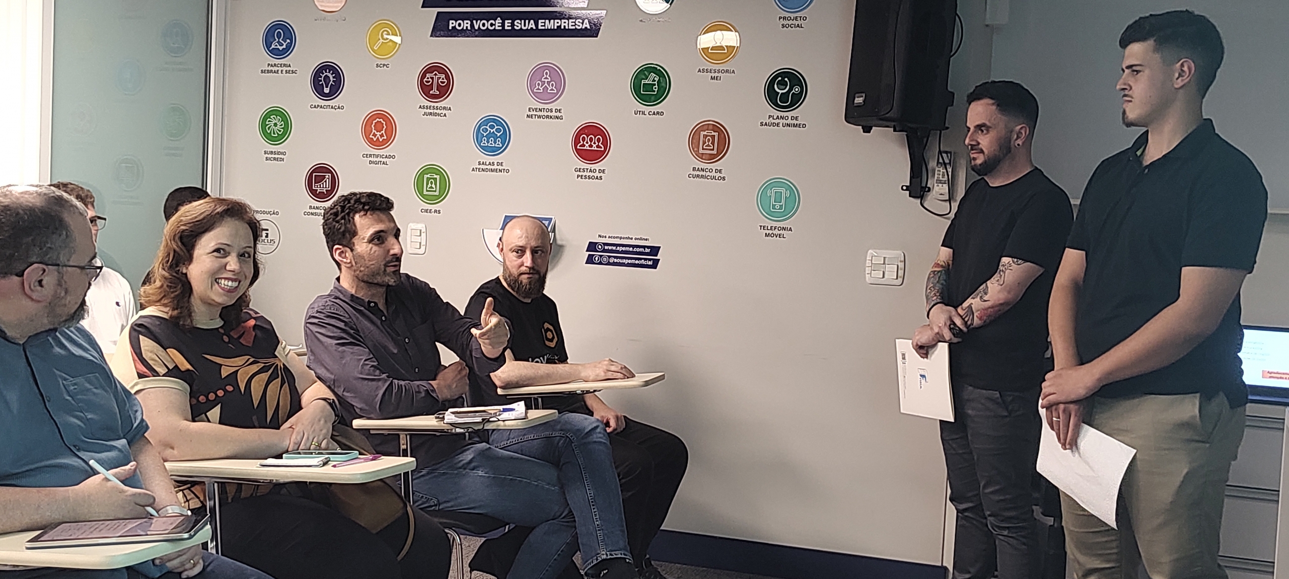 Nesta terça-feira, 26, o auditório da APEME foi palco de uma apresentação que marcou o encerramento da disciplina de Marketing Estratégico da FISUL. Orientados pelo professor Maicon Busnelo, os alunos mostraram o resultado do trabalho desenvolvido ao longo do semestre: planos de marketing personalizados para quatro empresas participantes do centro de inovação APEME Colab.