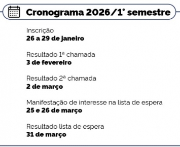 O edital do processo seletivo foi publicado pelo Ministério da Educação (MEC) no dia 8 de janeiro, por meio do Edital nº 2/2026. As inscrições são gratuitas e devem ser realizadas exclusivamente, no Portal Único de Acesso ao Ensino Superior, entre os dias 26 e 29 de janeiro.