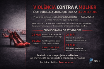 A Faculdade FISUL realiza, no primeiro semestre de 2026, mais uma edição do Programa Institucional Leitura do Semestre, com uma temática urgente e necessária: a violência contra a mulher.
